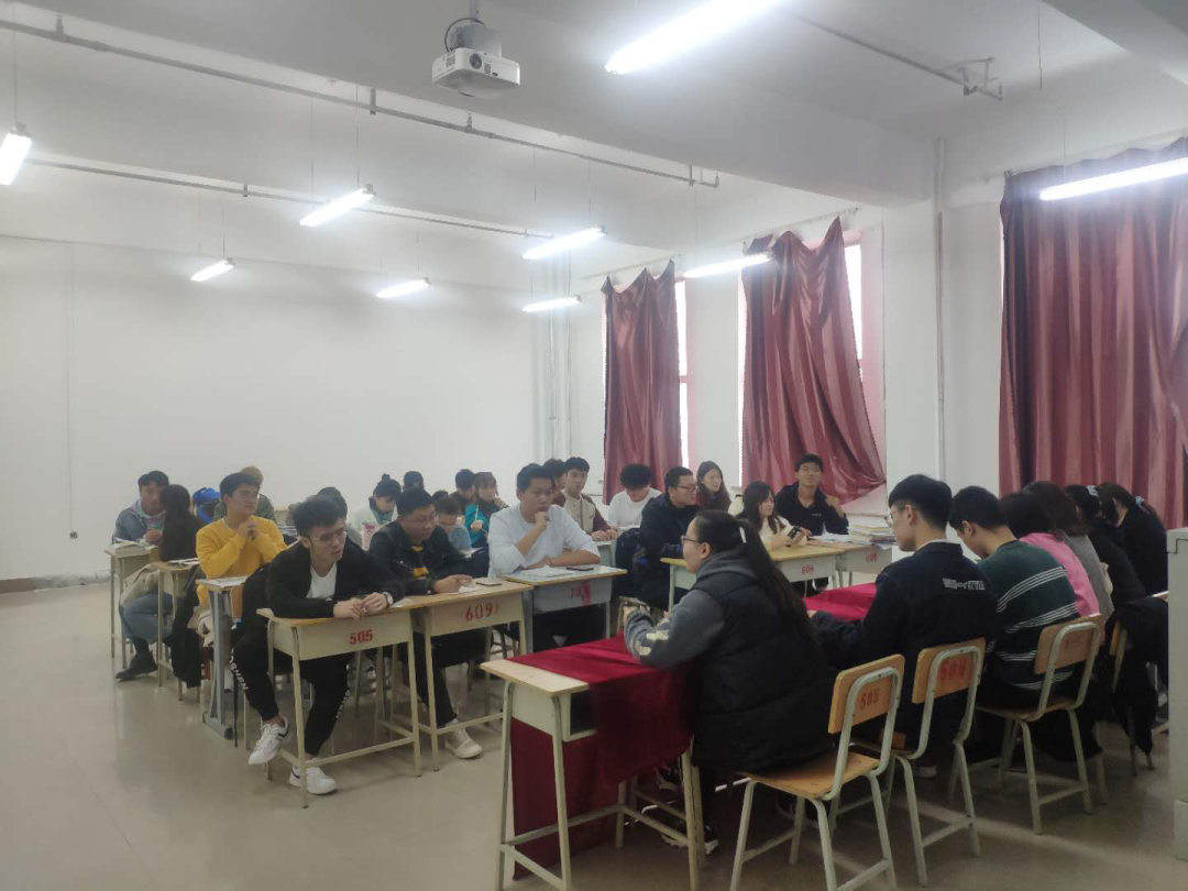 为进一步加强同学们对考研的认识,了解前沿就业形势,增强考研斗志,坚定考研信念。10月13日上午10点,我院18级实验班于主教505教室召开实验班第一次考研、四级交流会,18级实验班班主任胡旭老师邀请17级七位备战考研的同学们与18级实验班全体同学共同畅谈了“考研与四级”。