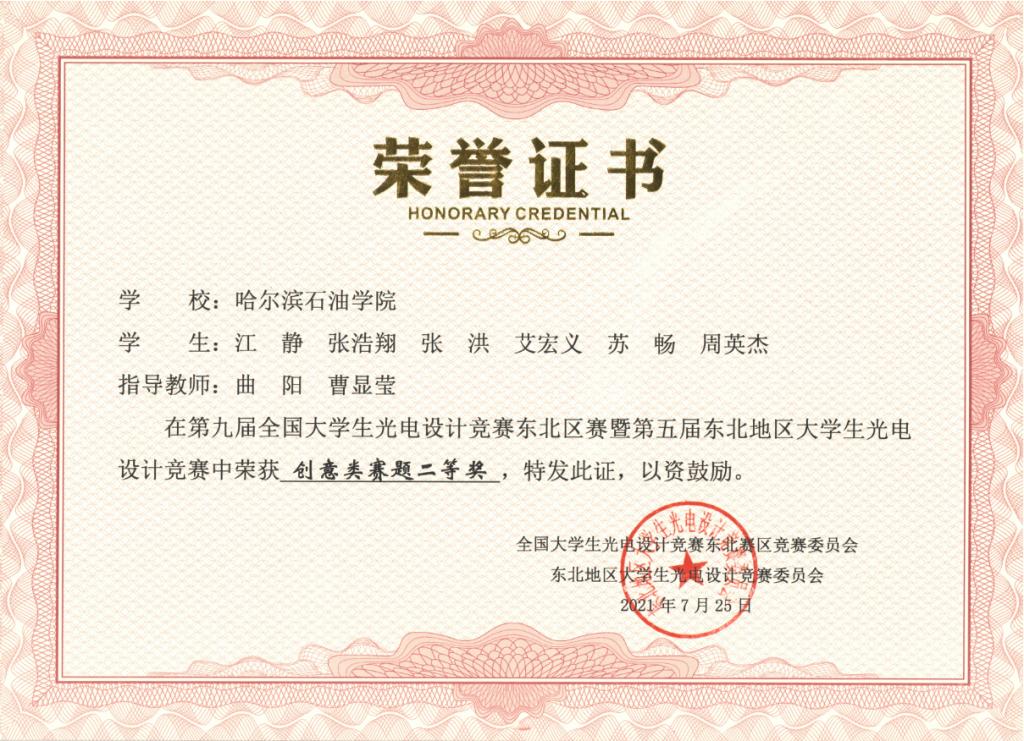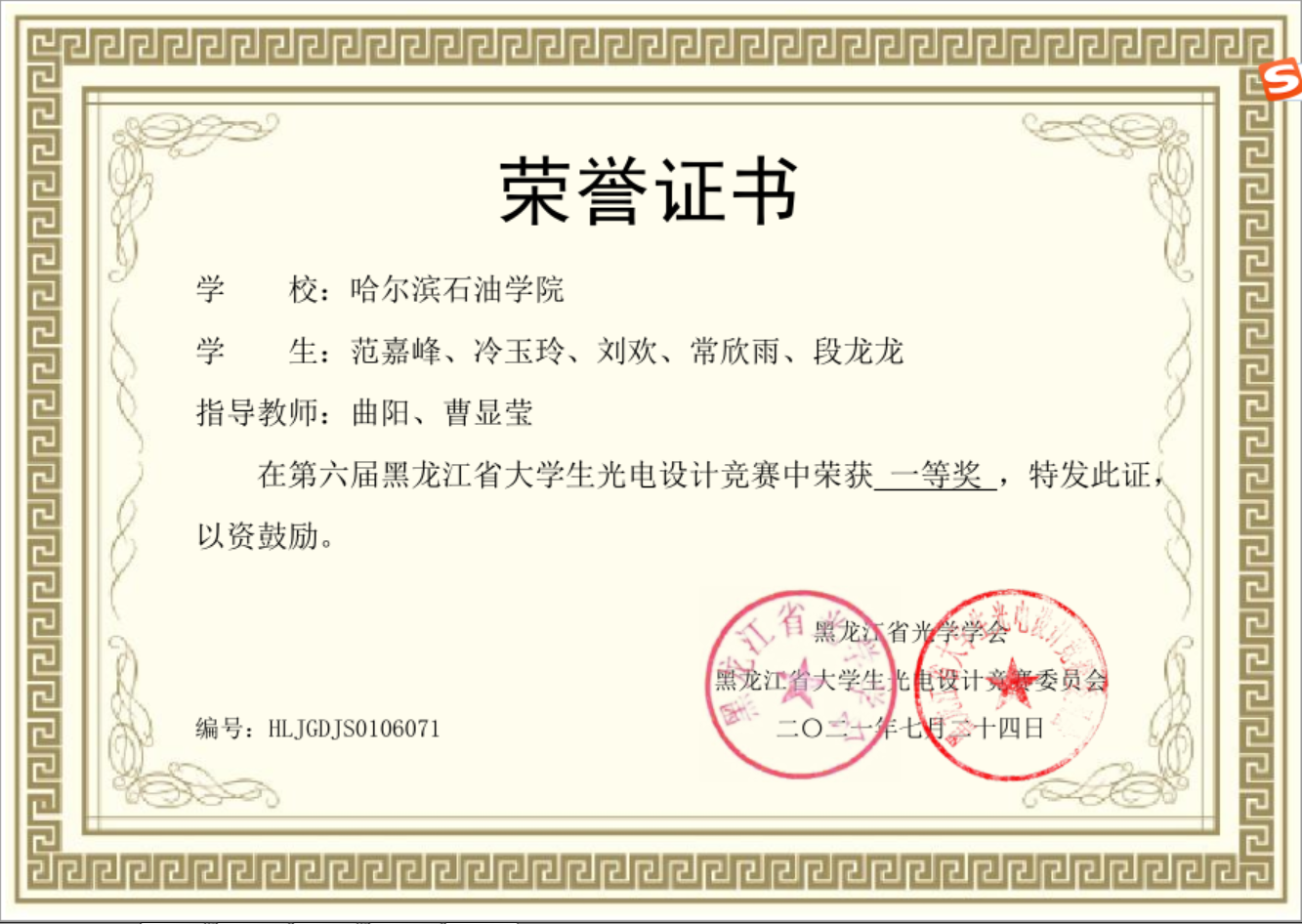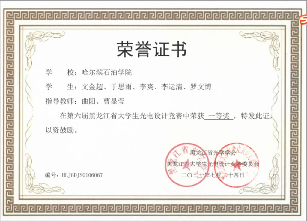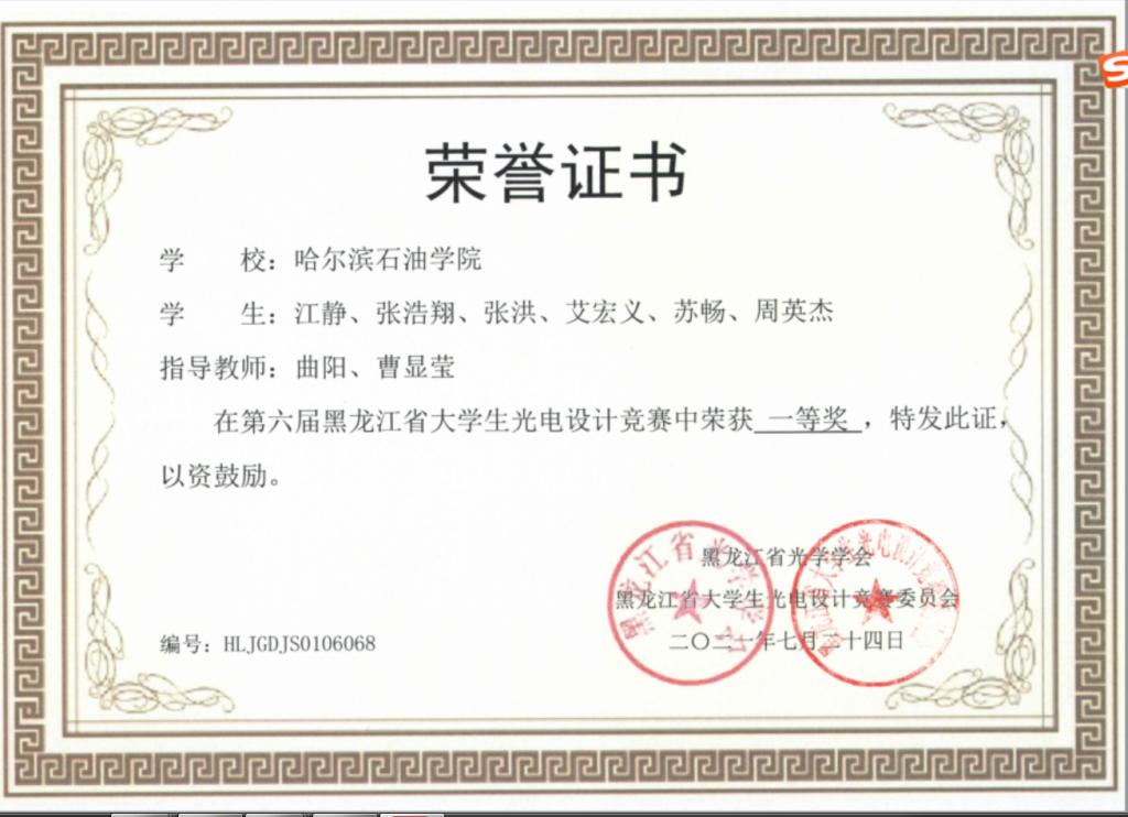2021年第六届黑龙江省大学生光电设计竞赛一等奖名单