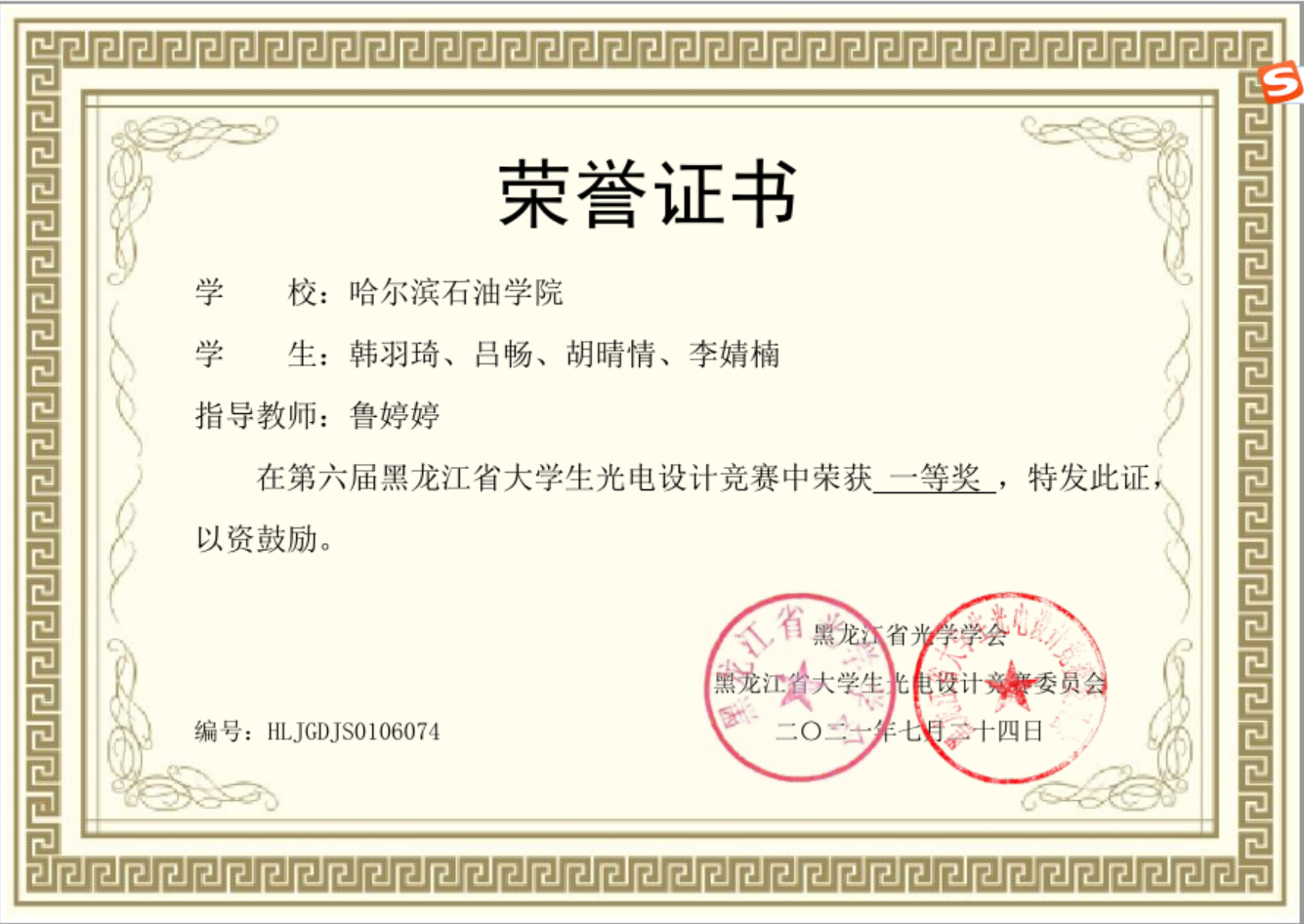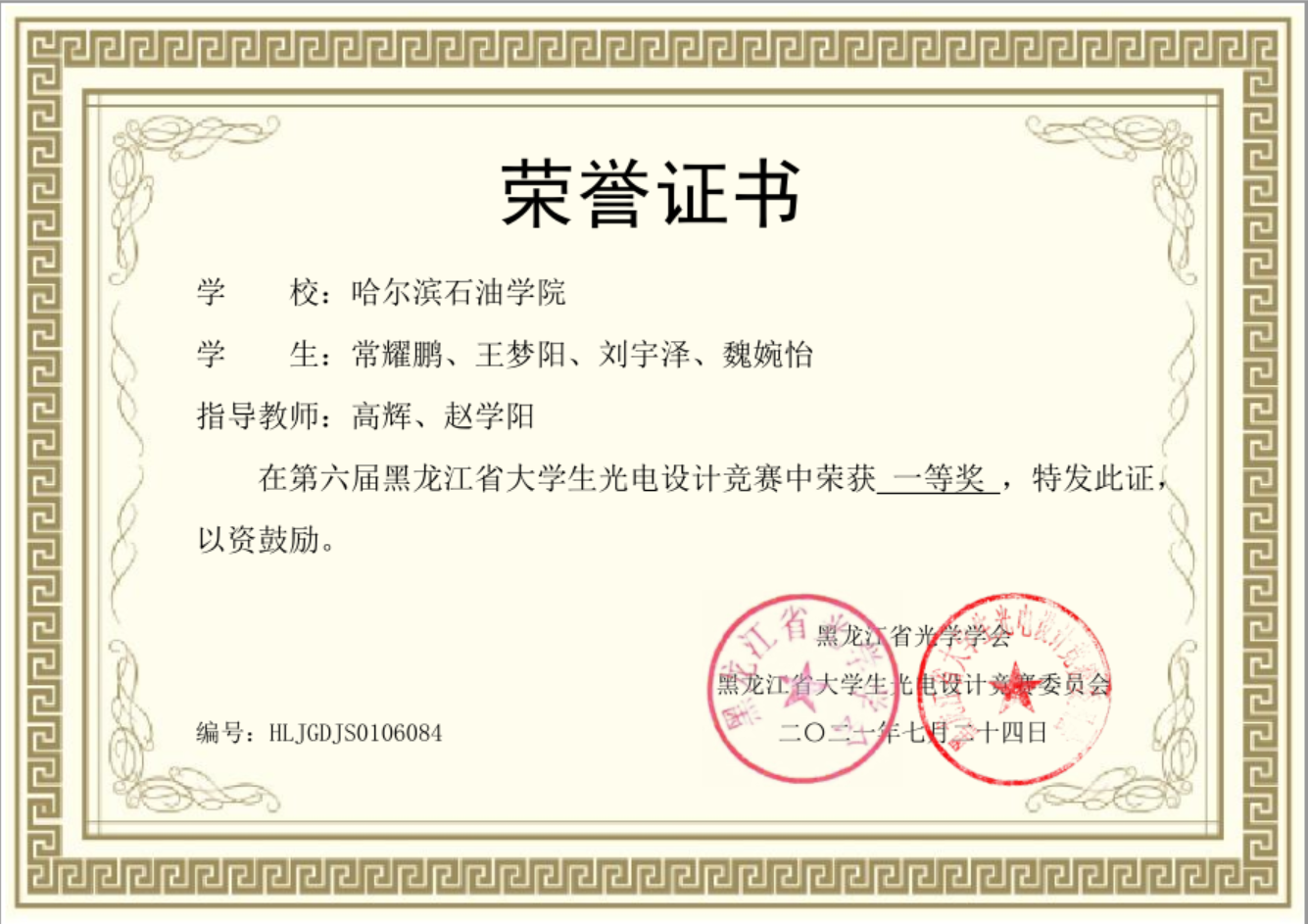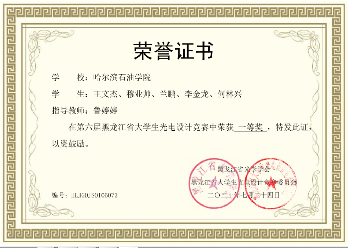 2021年第六届黑龙江省大学生光电设计竞赛一等奖名单
