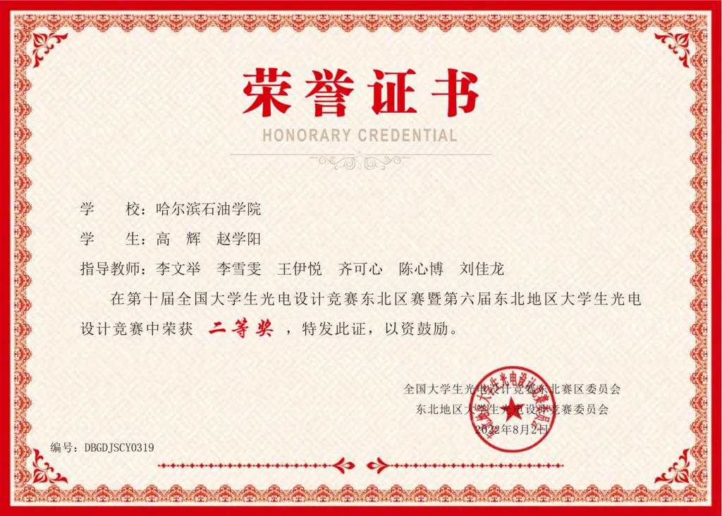 2022年第十届全国大学生光电设计竞赛东北区赛暨第六届东北地区大学生光电比赛一、二等奖
