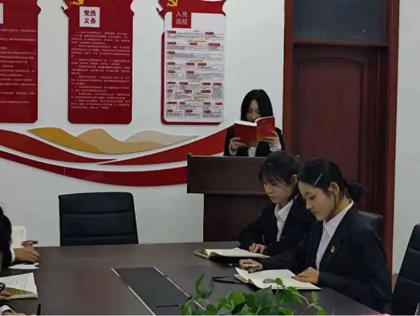 为全面学习宣传贯彻党的二十大精神,深刻领会习近平新时代中国特色社会主义思想,外国语学院学生党支部于11月23日开展“学习二十大,奋进新征程”学习领读会,本次活动由杜美睿同学领读,学生党员代表参加。
