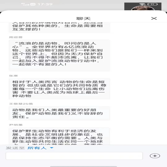 活动开始,外国语学院青年志愿者协会向外国语学院学生发出倡议,希望同学们能践行本次活动的宗旨,真正做到保护动物,提高保护动物的理念,做到内化于心,外化于行,并理论上帮助同学们了解了保护动物的重要意义。最后,同学们分享了自己参加此次活动的感受和理解,并表示深刻的体会到保护动物的重要性。