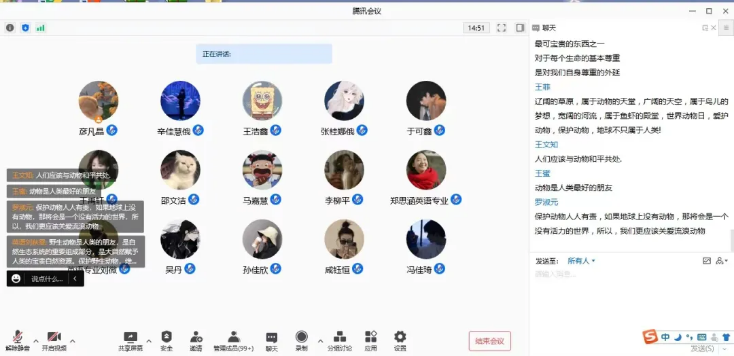 通过这次线上会议,同学们更加深入的了解到保护野生动物的重要性。动物是人类的朋友,它们都是地球大家庭的一员,保护动物从自身做起,从身边做起,相信大家的保护意识会越来越强。保护动物,维护自然生态平衡,关系到人类的生存与发展。所以,作为大自然中的一员,我们应该从自己力所能及的事情做起。
