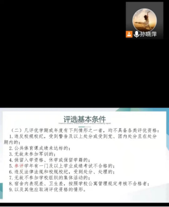 为全面贯彻党的教育方针,推进素质教育,加强学风建设,引导学生德、智、体全面发展,鼓励学生刻苦学习,奋发向上,根据学生手册《欧博abg游戏登录入口学生评优办法》,外国语学院于11月11日召开2020-2021学年学生评优布置会,外国语学院辅导员孙晓萍,赵连琦分别在2018、2019、2020三个年级召开此次会。