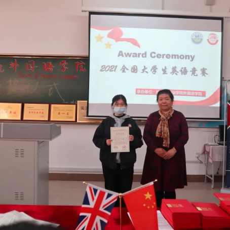 为表彰参赛学子在大学生英语竞赛中取得的优秀成绩,外国语学院于10月26日举办2021全国大学生英语竞赛颁奖仪式,本次活动由王慧宇老师担任主持人。院长王莉娅,副院长高丽娜出席本次活动。