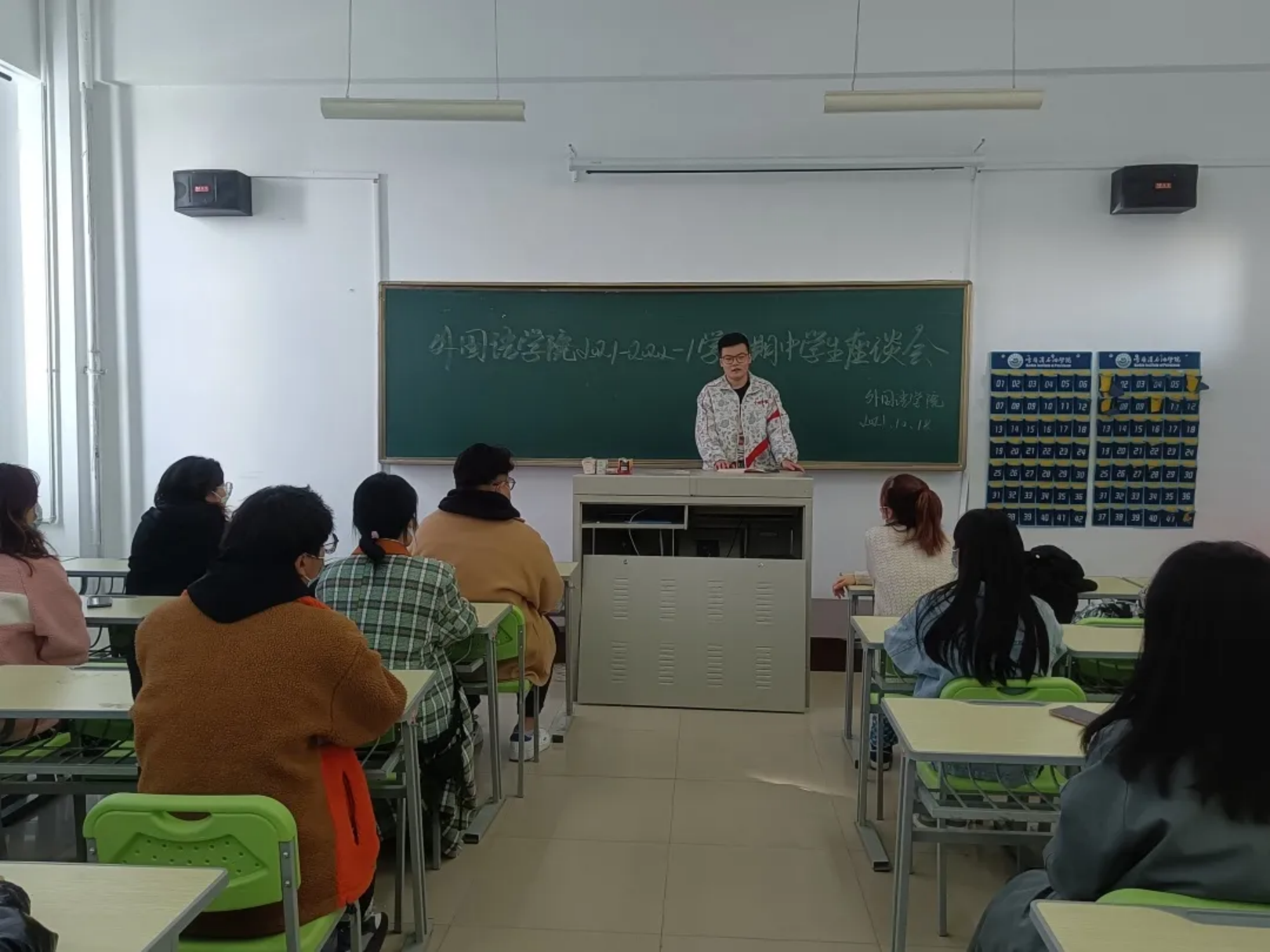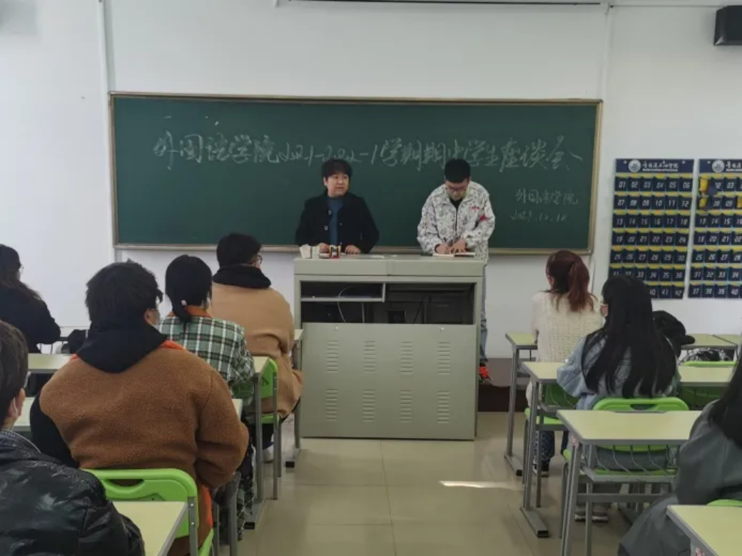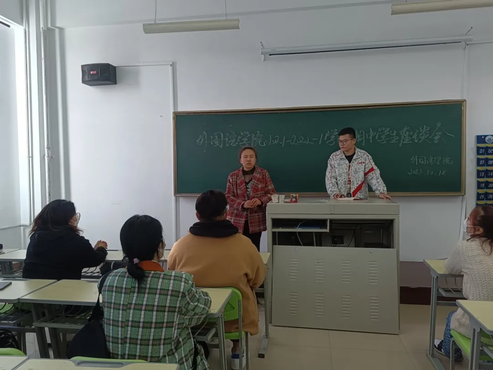 为全面了解和掌握本学期学院的教学工作情况,外国语学院于10月18日召开了期中教学检查学生座谈会,会议由外国语学院党总支副书记孙晓萍主持、外国语学院学生党支部书记赵连琦,各教研室主任及各年级学生代表参加。