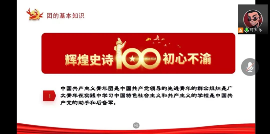 活动伊始,主持人带领同学重新学习了团徽的意义,讲述了团的光辉历程,随后,在领誓人的带领下重温入团誓词,“我志愿加入中国共产主义青年团,坚决拥护中国共产党的领导,遵守团的章程,执行团的决议,履行团员义务,严守团的纪律,勤奋学习,积极工作,吃苦在前,享受在后,为共产主义事业而奋斗。在这庄严神圣的氛围中,青年团员们接受了一次思想的洗礼和心灵的震撼,这将引导着他们在今后的学习工作中不忘誓言,不辱使命,永葆先进。最后,全体同学合唱团歌,嘹亮奋进的歌声振奋人心,彰显着共青团员蓬勃的朝气。