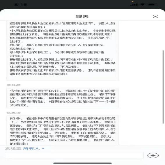 活动中,我们倡导同学们自觉遵守禁止燃放烟花爆竹的规定,不违规制作、运输、存储、销售、购买、燃放烟花爆竹。倡导同学们参与“光盘行动”,节约每一粒粮食、节约每一棵蔬菜。积极参加网络精神文明活动,提倡通过微信、电话、视频的与家人、亲友“云团聚”,不参加聚集性活动。同学们也发表了自己的看法和意见,表示会积极参与活动。