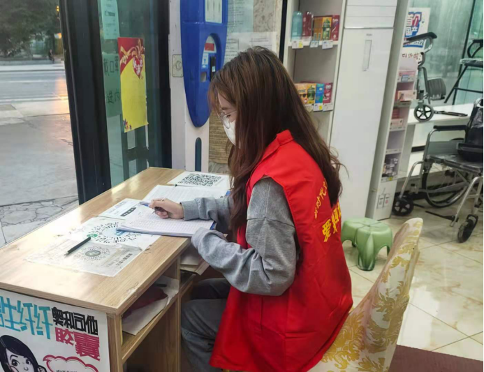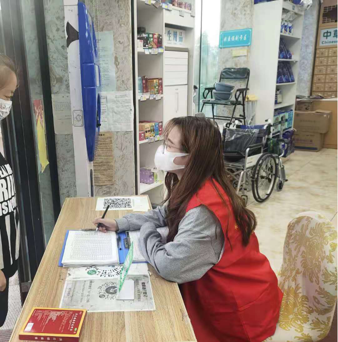 参加志愿活动时,梁馨悦同学主要负责到团结路社区及药店,扫码测温实时记录并随时监督,虽然志愿服务时长有时达到一整天但是也能体会到忙碌带来的幸福,我们的社会为每个人都打造了一个环境,每个人就在这个环境中生存和发展。梁馨悦同学说:“作为一个志愿者在享受这份环境的同时,更要为社会贡献自己的力量,作为对社会的报答。正所谓人人为我,我为人人,每当我享受着他人为我创造的劳动成果时,我就更加强了加入志愿者队伍的决心。”一个人的力量是渺小的但十人、百人、乃至千人的力量却是巨大的。我加入志愿者的队伍,可以更好地把我的爱心播撒出去。这样就会有更多有难的人,更多需要关心的人能够更好地得到帮助,人与人之间的关系更加的被拉近,期待春暖花开,期待雾霾散去,期待疫情早日结束。