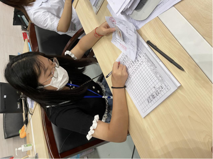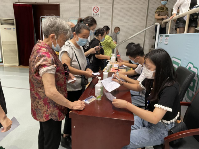 在接到志愿通知的时候,杨睿同学立即报名,在市体育馆开展疫苗接种志愿服务。