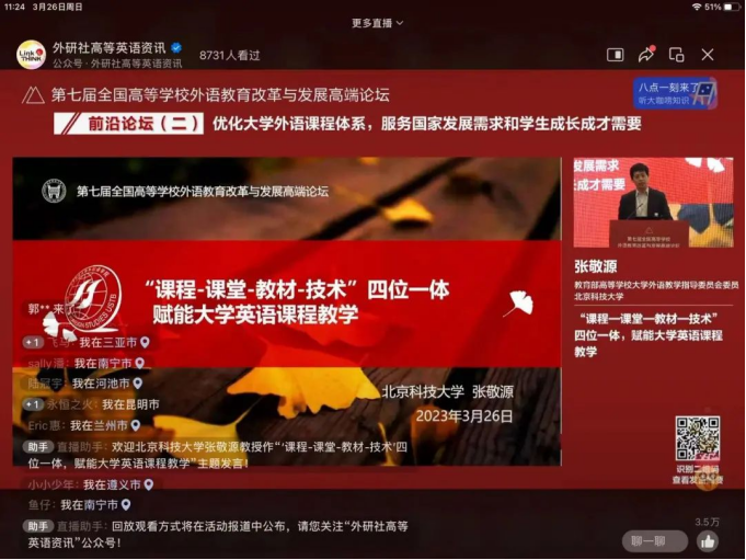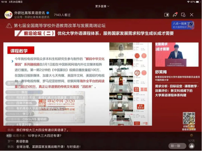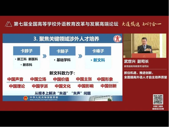 25日上午,本次论坛的主题为“大道致远,知行合一”。中宣部领导、教育部领导、教指委专家及两千余位高等外语教育界专家学者齐聚北京,近10万高等外语教育同仁云端参会,以党的二十大精神为指引,共同探索外语教育现代化建设新路径。