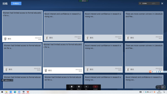 有关互动形式主要采用语音连麦开启摄像头的模式,但是课时时长及个别网络略延迟等客观因素使得语音连麦覆盖范围有一定局限性。加入雨课堂+腾讯会议模式之后,在结合课前预习情况筛选课中理论知识讲授重点,线上课堂通过平台智慧助学功能与学生积极互动,通过雨课堂模式下的课件中插入部分问题来通过学生完成。问题的形式有限时抢答、随机点名回答、分组讨论、弹幕及投稿互动等形式。通过与学生互动了解学生的学习行为,及时改进教学方法,实现学生在教学中的中心地位。