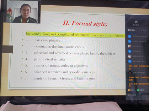 上图为我系原琳阳老师在进行英语阅读(III)科目教学