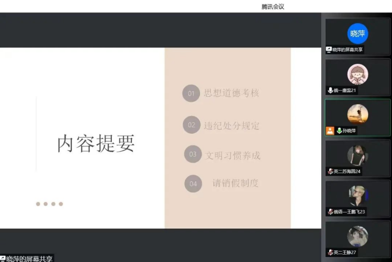 一是思想道德考核;用道德去引导优良学风建设,用文明去规范教化学生的行为,以内驱动力主动地反省失误,改正错误,勤奋学习。二是违纪处分规定;强调同学们要遵守学校的校规校纪,详细的介绍了向大家重点介绍了欧博官网违纪处分条例、学生在校行为准则等相关规定。三是文明习惯养成;强调同学们重视学生寝室的安全管理与寝室文化建设,希望同学们能养成良好文明习惯。四是请销假制度;学生不能按时到课,应当事先履行书面请假手续,然后填写请假单,说明请假原因、时间,并及时告知辅导员。最后,孙晓萍强调同学们一定严格遵守学校的规章制度,严于律己,争做一名优秀大学生。