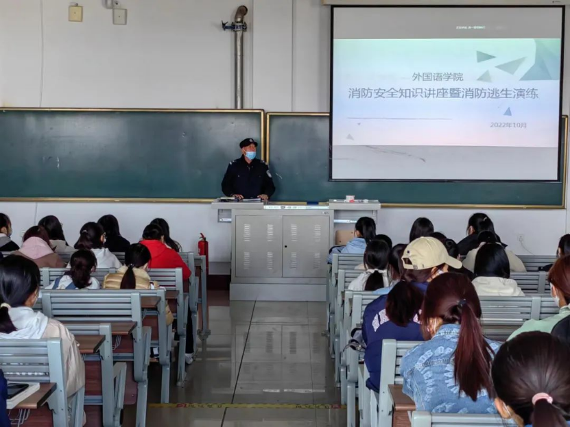 为切实加强校园安全工作,普及校园安全常识,提高学生消防安全防范意识和自防自救技能,外国语学院于10月13日开展安全消防演练活动。