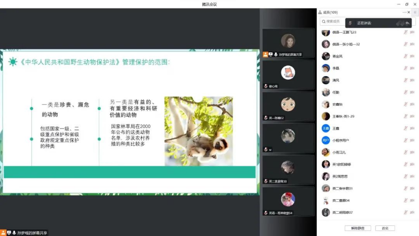 活动过程中,会议负责人播放PPT向同学们普及了《中华人民共和国野生动物保护法》《黑龙江省野生动物保护条例》及野生动物保护知识,并播放了相关视频以呼吁同学们共同参与,激发同学们对野生动物保护的热情,提高同学们对保护野生动物重要性的认识。最后,同学们各抒己见,表达出对保护野生动物的热情和决心,深刻了解到保护野生动物的重要性,整个活动顺利进行并达到预期效果。