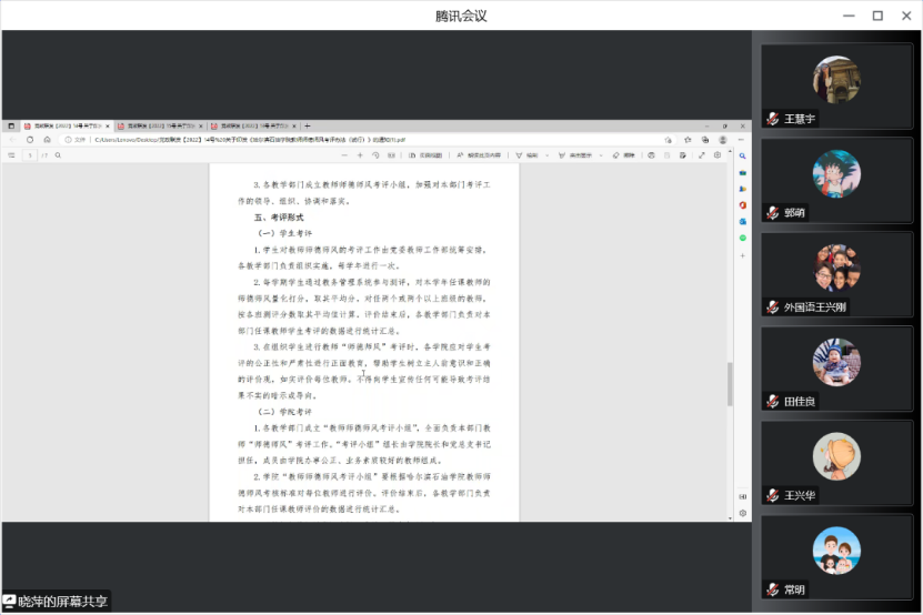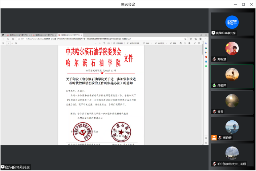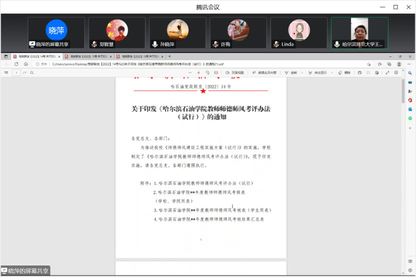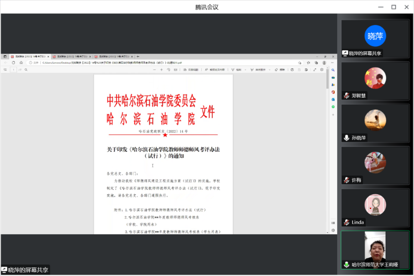 本次培训会由外国语学院党总支书记孙晓萍主持,以线上视频会议的方式进行。在培训中孙晓萍首先带领全体教师学习了《欧博abg游戏登录入口关于进一步加强和改进新时代教师思想政治工作的实施办法》、《欧博abg游戏登录入口教师师德师风考评办法(试行)》、《欧博abg游戏登录入口教师职业行为负面清单及处理办法》文件的主要内容。之后结合目前社会较为关注的教师队伍存在的问题、治理教师微腐败的举措以及推进师德师风建设的工作要求等内容进行了学习与解读。典型案例教训深刻,这也给我们再一次敲响了警钟——师德违规问题“零容忍”,师德师风建设永远在路上,只有进行时、没有完成时。