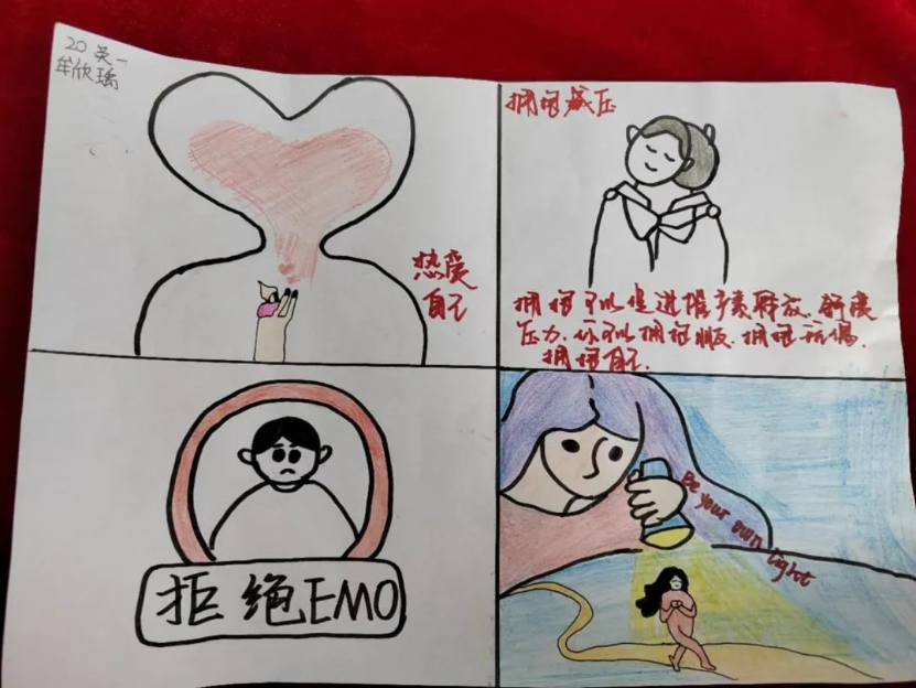 本次活动中,同学们利用手中的画笔,用绘画的方式,绘画出一张张富有意趣的、展现个人内心的图画,同学们的作品选题丰富,一幅幅色彩明艳、新颖别致的绘画作品,极富艺术感染力,传递了心理正能量。