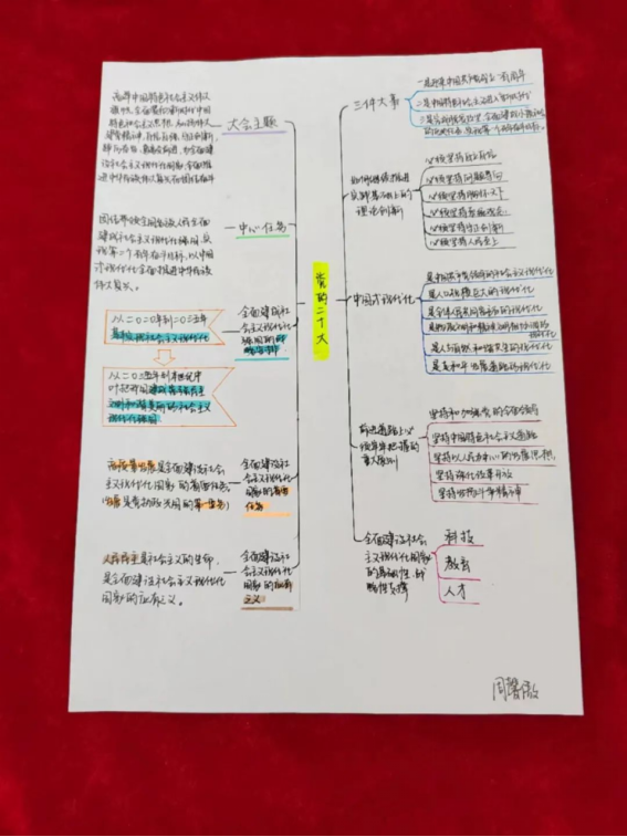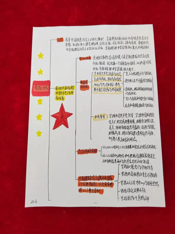 为引导广大青年学生及时、全面、系统学习贯彻党的二十大精神,营造良好的学习氛围,采用“思维导图”的方法学习党的二十大精神,创新学习模式。外国语学院学生党支部面向全体学生党员开展学习二十大思维导图制作活动,共同学习党的二十大报告,做到全面系统、融会贯通。