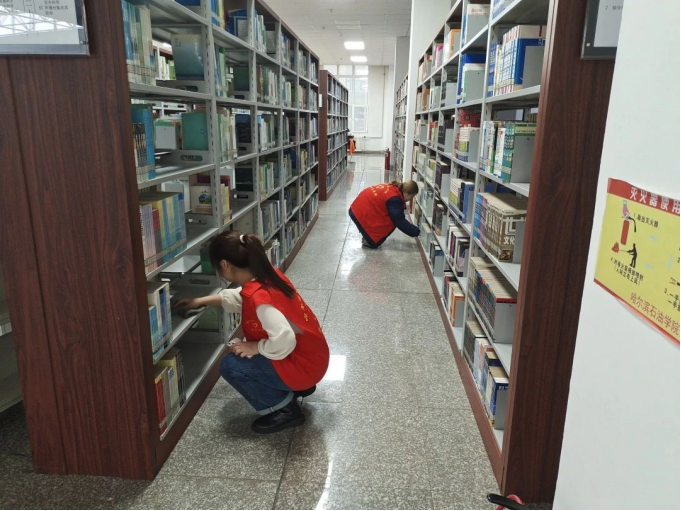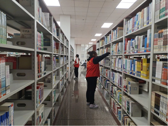 活动伊始,图书馆刘老师为志愿者分配工作,安排同学们打扫并整理书架。随后,志愿者们分工明确,将图书整理后放到指定书架,清理书架上的灰尘。活动过程中,志愿者们安静有序,在不打扰其他同学学习和阅读的情况下,顺利且圆满地完成了清理活动。最后,全体志愿者在图书馆一楼合照留念。