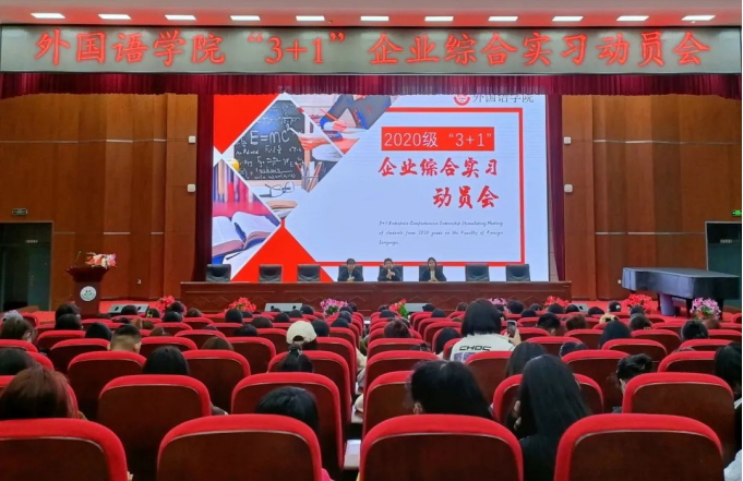 为了使学生进一步认识到企业综合实习的重要性,明确实习的目标和方向,保证2020级学生“3+1”企业综合实习工作的顺利开展。外国语学院于3月6日召开2020级“3+1”企业综合实习动员会,会议由2020级辅导员赵连琦主持,外国语学院院长王莉娅、党总支书记孙晓萍,全体2020级同学参加了本次会议。