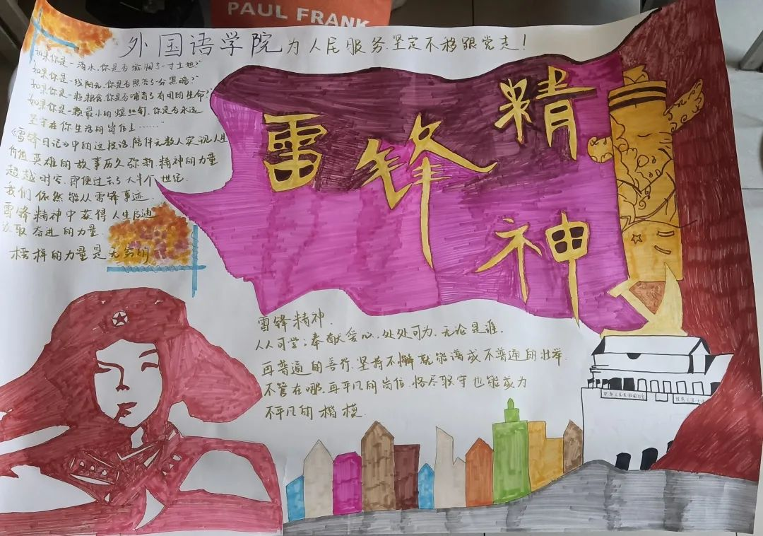 为了让同学们以实际行动来学习雷锋全心全意为人民服务的奉献精神,把握雷锋精神的时代内涵,传承雷锋精神,不断壮大志愿服务队伍,让雷锋精神在新时代绽放更加璀璨的光芒。外国语学院于2023年3月19日在欧博abg游戏登录入口开展“学习雷锋好榜样 手抄报里传风尚”雷锋月主题活动。