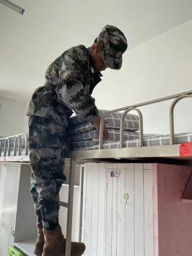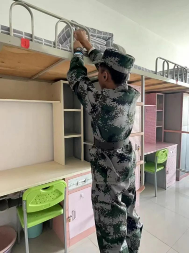 “出门看队伍,进门看内务”,寝室内务整理也是新生军训的必修课程之一。内务整理主要是以规范宿舍内物品摆放,被褥叠放,地面清扫为内容。
