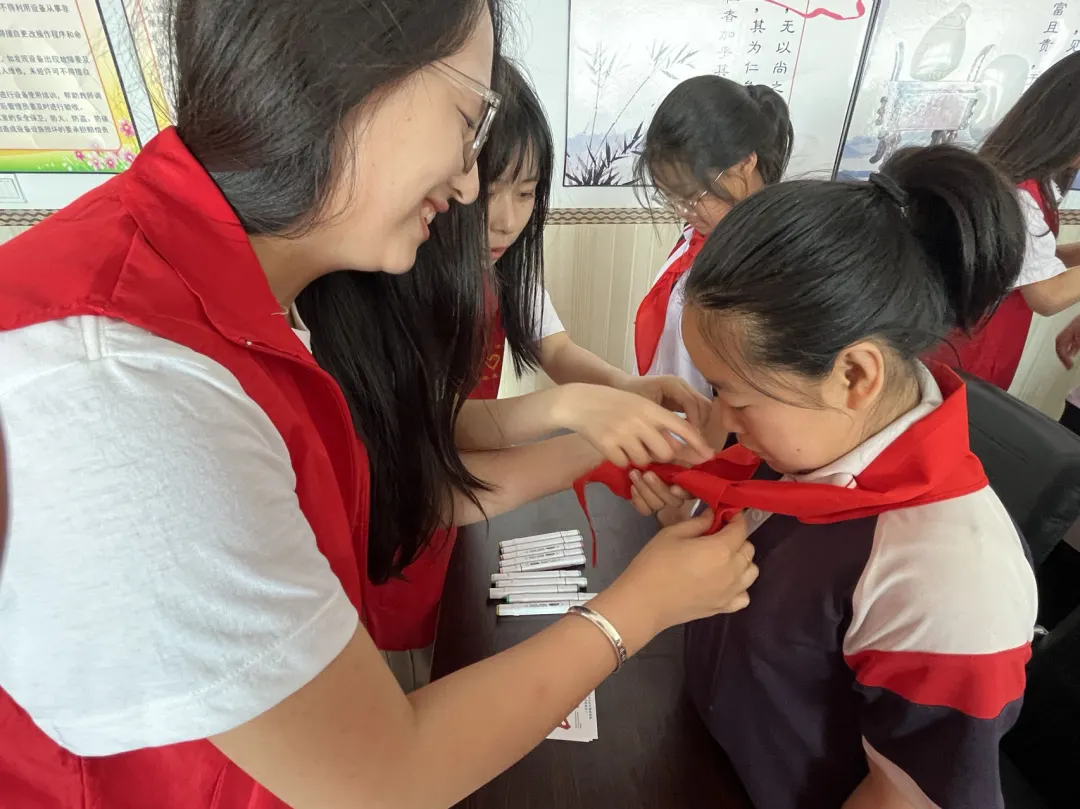 活动伊始,外国语学院团总支书记赵连琦与长岭中心小学校长宛明辉分别发表了热情洋溢的讲话,为活动拉开了序幕。志愿者们向学生们分发了精心准备的贺卡,一同制作了向老师们致敬的贺卡。此外,志愿者们还为学生们佩戴了象征荣誉的红领巾,并分发了寓意着鼓励与希望的礼品与漫画知识书籍。