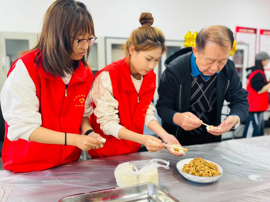 经前期与社区方面沟通,此次活动将为在社区居住的长辈们包饺子,以一种“热气腾腾”的方式陪伴他们度过一个难忘的节日。活动中,青年志愿者们充分践行“奉献、友爱、互助、进步”的志愿服务精神。他们面带微笑,忙碌地穿梭在各个角落。有的熟练地擀皮、包馅儿,为老人精心制作美味的饺子;有的则认真地打扫卫生,让老人们的居住环境焕然一新;还有的围坐在老人身旁,带着节日的问候以及真切的关怀,与老人们唠家常、问冷暖。他们耐心地倾听老人们讲述过去的故事,分享生活中的喜怒哀乐。那温馨的画面,仿佛冬日里的暖阳,温暖着每一个人的心。