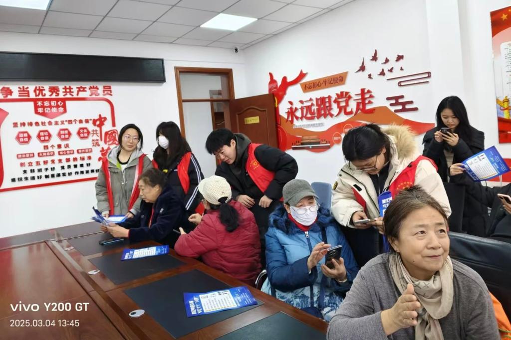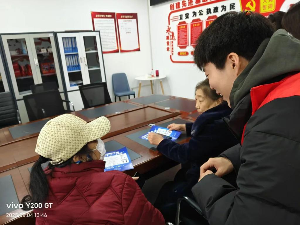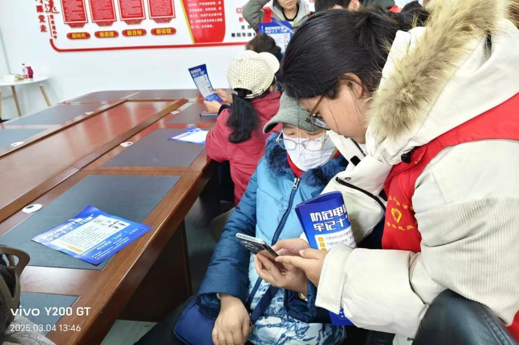 在社区活动室内,一场"银发守护"反诈宣传同步开展。活动发放自制反诈宣传单,志愿者通过还原"保健品诈骗""冒充公检法"等典型案例,帮助老人安装国家反诈中心APP。