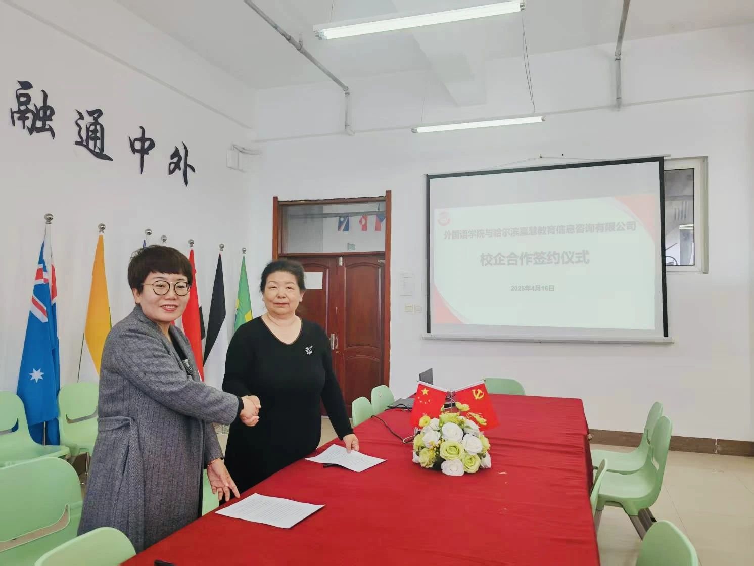 活动开场,在众人见证下,外国语学院王莉娅院长与安妮花阅读馆哈尔滨校区李威校长郑重签署校企合作协议。签约后,双方代表握手留念,这一握手标志着校企合作稳健启航,为后续深度合作筑牢根基。