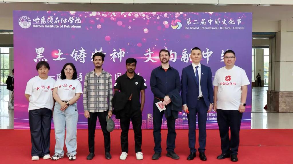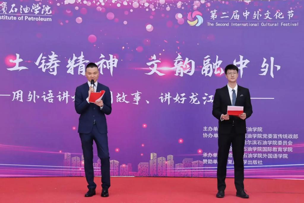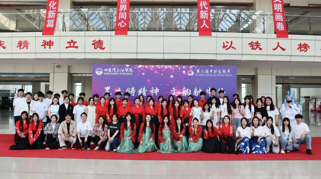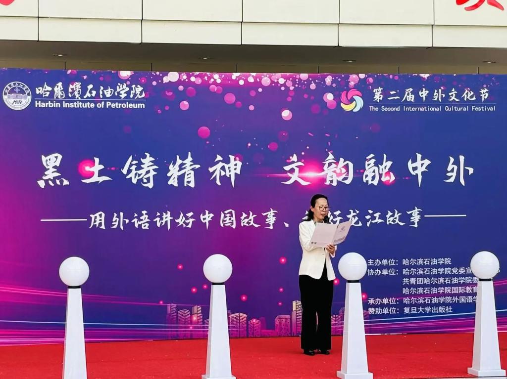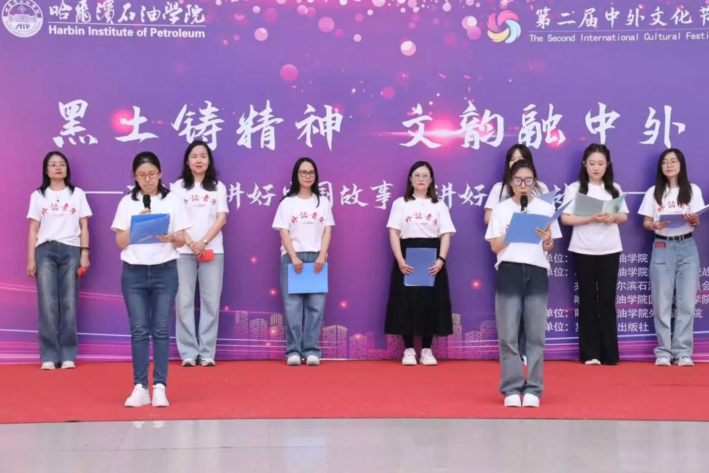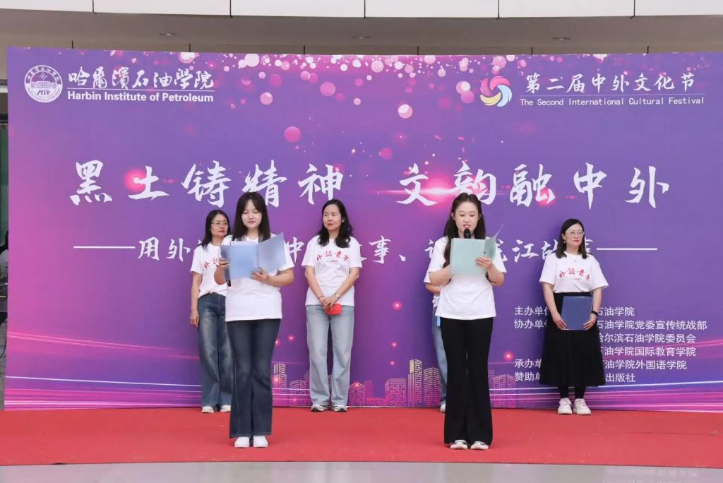 2025年6月3日,主教学楼阳光大厅内中外文化交融生辉,由我院承办的“黑土铸精神 文韵融中外——用外语讲好中国故事、讲好龙江故事”第二届中外文化节盛大启幕。全体校领导、机关各单位负责人、各二级学院师生代表及外籍教师、留学生共襄文化盛宴,在跨文化对话中彰显龙江精神、铁人精神内核,筑牢文化自信根基。