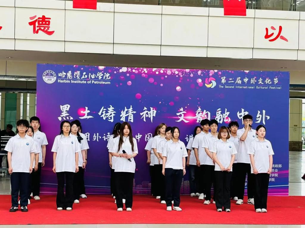 开幕式上,校长王义宁作精彩致辞;外语演讲训练营的师生用英、俄语深情讲述“大庆石油会战”“北大仓变迁”等中国故事与龙江记忆;艺术与教育学院学生献唱民族歌曲,啦啦操表演队以活力舞姿点燃现场氛围,多元艺术形式勾勒出文化交流的生动图景。