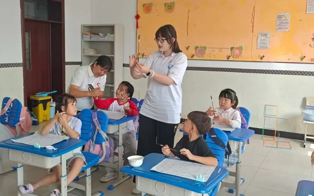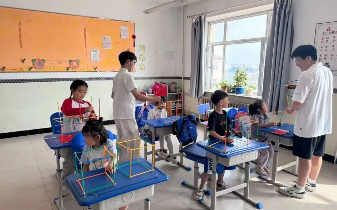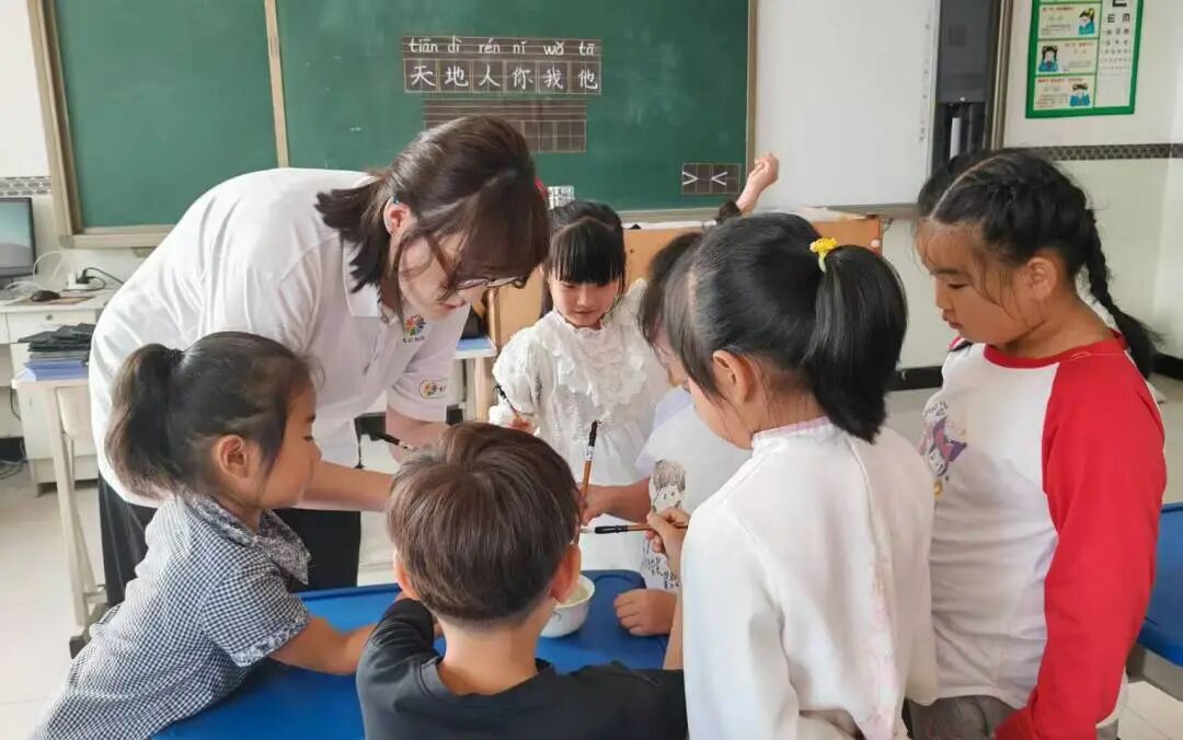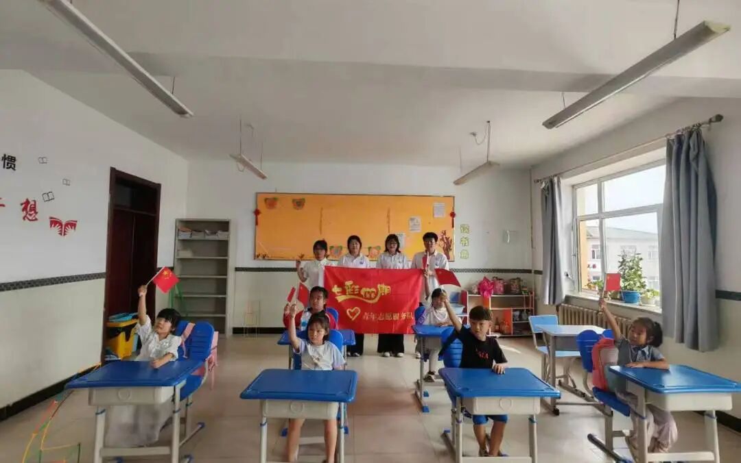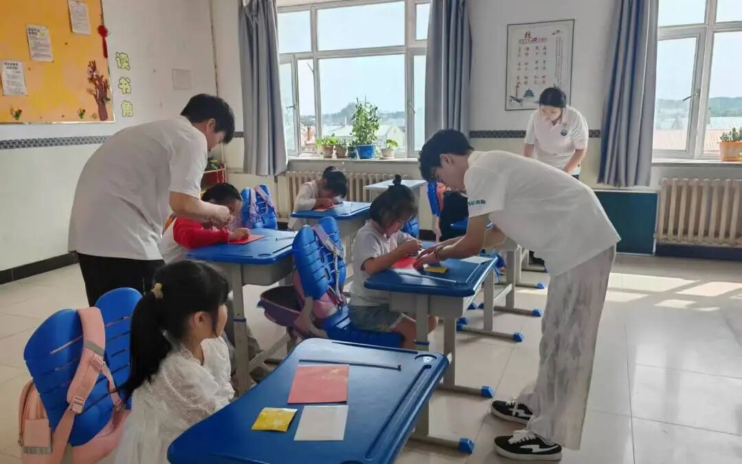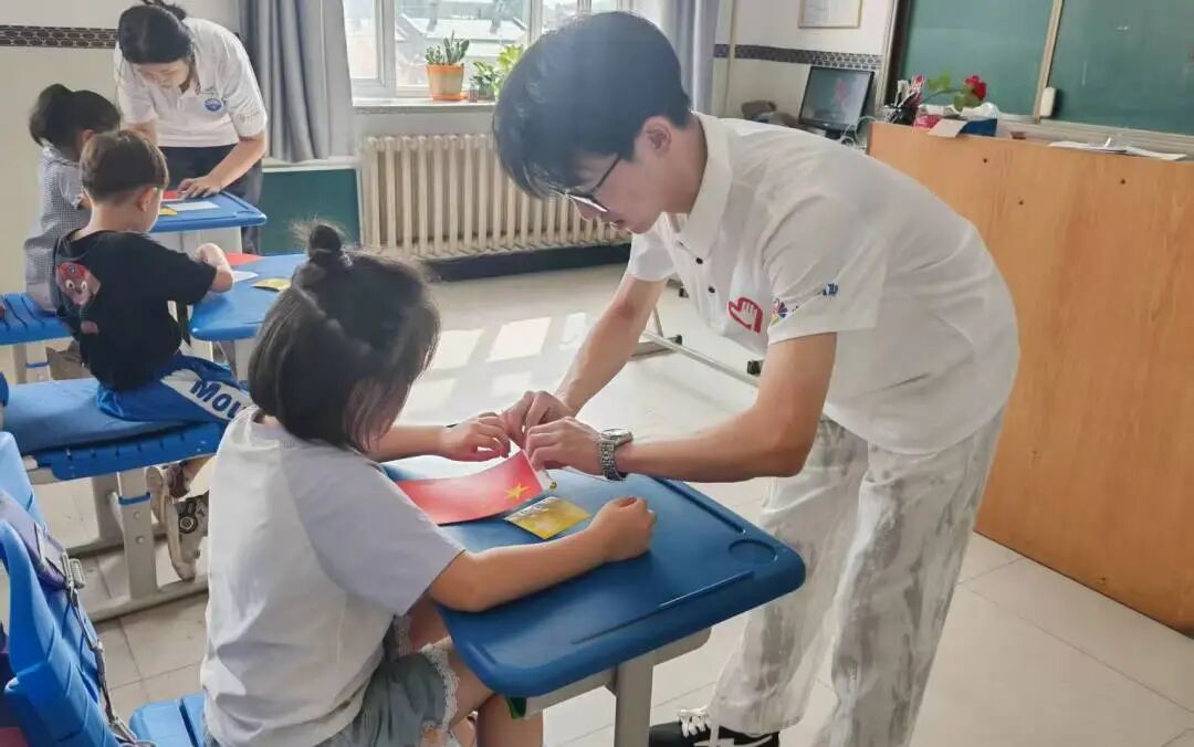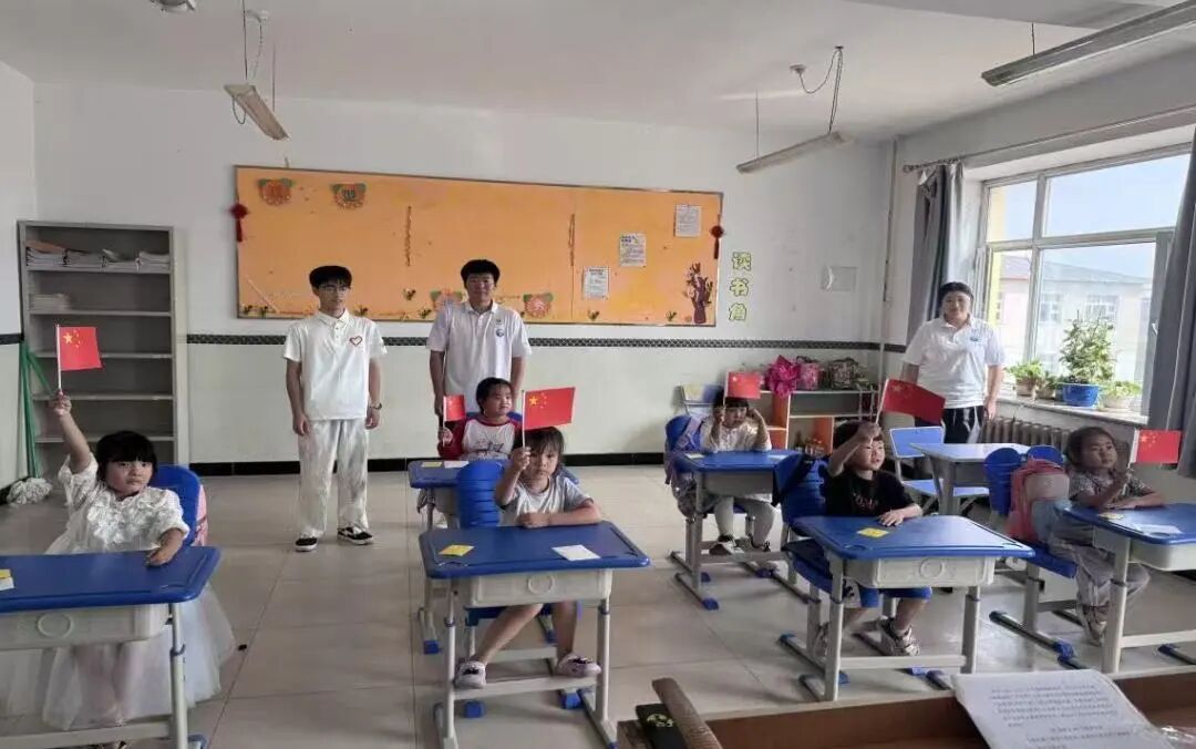 为丰富乡村少年儿童假期生活、助力其全面发展,2025年9月5日,在团总支书记赵连琦的带领下,外国语学院蔚彩筑梦服务队走进黑龙江省哈尔滨市呼兰区长岭中心小学,开展“七彩假期”主题志愿服务活动,带来识国旗、书法教学、垃圾分类讲解等特色活动。
