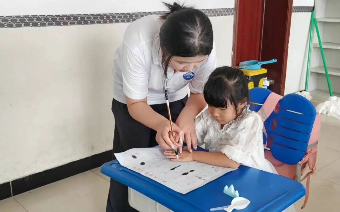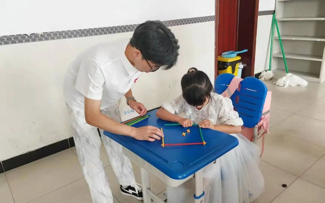 活动现场,识国旗、书法课、垃圾分类讲解与“小吸管搭世界”等环节有序衔接、趣味十足。志愿者先讲解国旗的红色革命象征与五星团结寓意,引导孩子们动手粘贴五角星,在实践中厚植爱国情;随后的书法课上,从握笔姿势到基础笔画示范,志愿者耐心指导,让孩子们在笔墨练习中感受传统文化魅力;垃圾分类环节则通过彩色卡片讲解与模拟投放游戏,帮助孩子们轻松掌握分类知识,树立环保意识;最后的“小吸管搭世界”活动,孩子们发挥想象,用吸管搭建出各类创意作品,在动手过程中释放创造力,每个环节都让孩子们收获满满。