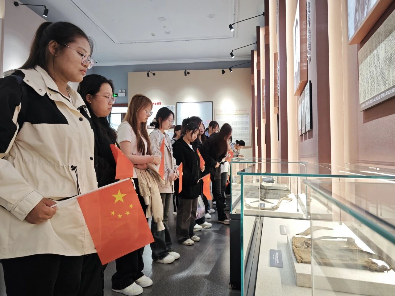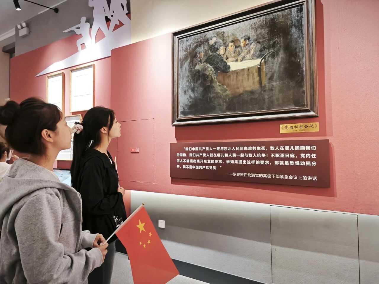 在东北烈士纪念馆内,大家逐一参观馆内珍贵的历史文物、影像资料与场景复原展区。从革命英烈的生活用品,到相关文献档案,每一件展品都承载着革命先辈的英勇事迹。师生们不时驻足交流,深刻理解革命先烈为了国家前途和民族复兴“抛头颅、洒热血”的光辉事迹。进一步体会到今日幸福生活的来之不易,爱国热情与责任感在参观过程中不断升华。老师们鼓励同学们将红色精神内化于心、外化于行,以“五色成长营”为起点,在未来的学习生活中传承红色基因,以青春之力践行“强国有我”的誓言。