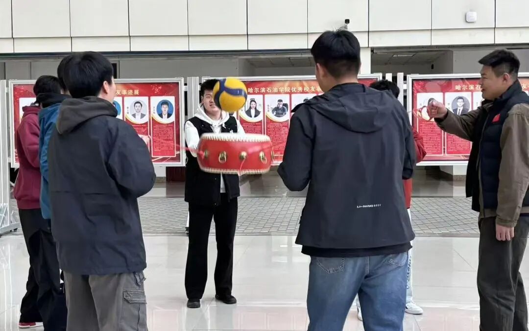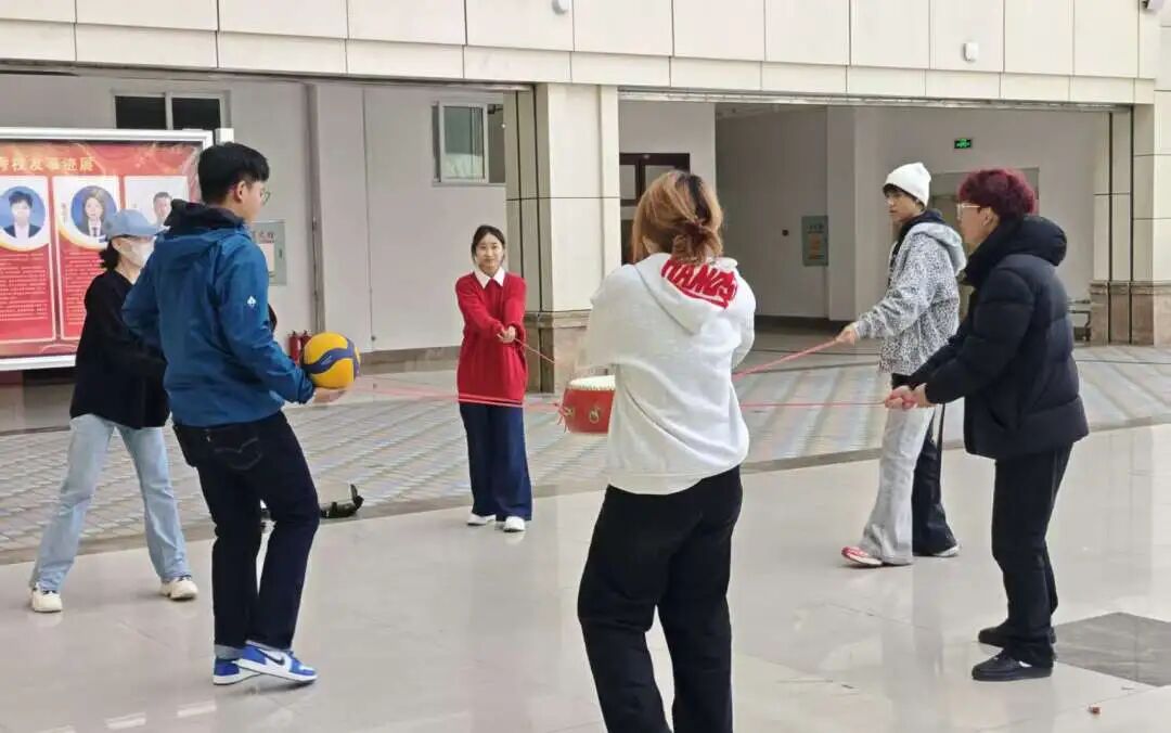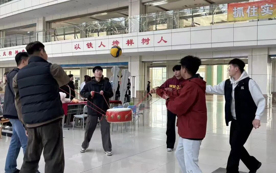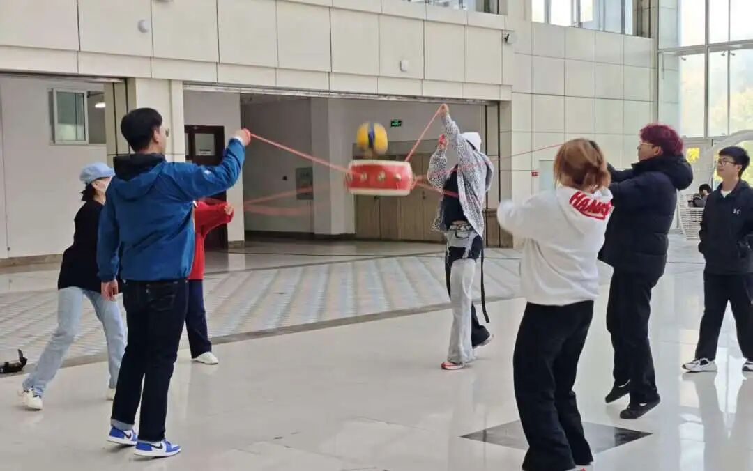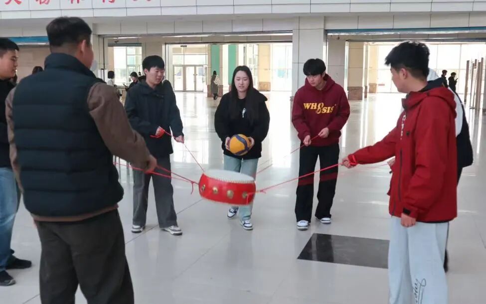 同心鼓活动则以“红绳连心意,鼓点聚共识”为设计理念,6人一组手持红绳共同颠球。在配合调整鼓面高度、把控颠球节奏的过程中,学生需主动沟通、默契配合,不仅能在协作中感受到同伴的支持与信任,更能在专注于颠球的当下排除外界干扰,成为释放压力、培养专注力的“沉浸式心理调节实践”,让心灵在团队协作的交响中得到滋养。