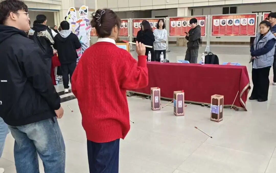 投壶活动以“当压力‘壶’面而来,你需要一次精准的‘投入’”为核心,将传统游戏与心理疗愈深度融合。参与者需在距壶4块瓷砖外投箭,每轮5次的瞄准过程,能让人主动抛开学业、生活中的杂念,让焦虑随箭矢落地而消散,在专注投掷中完成心理复位,同时锻炼眼手协调能力,为快节奏校园生活里的学生提供一场“古典又高效的心灵放松课”。