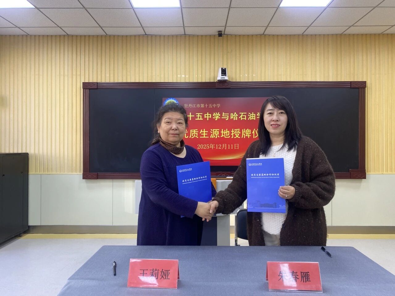 12月11日至12日,院长王莉娅、党总支书记毛雷一行赴牡丹江市、穆棱市开展校际交流,先后与牡丹江市第五中学、牡丹江市第十五中学、穆棱市第二中学签署优质生源基地建设协议,各合作中学相关负责同志、教师代表分别出席相应签约仪式。