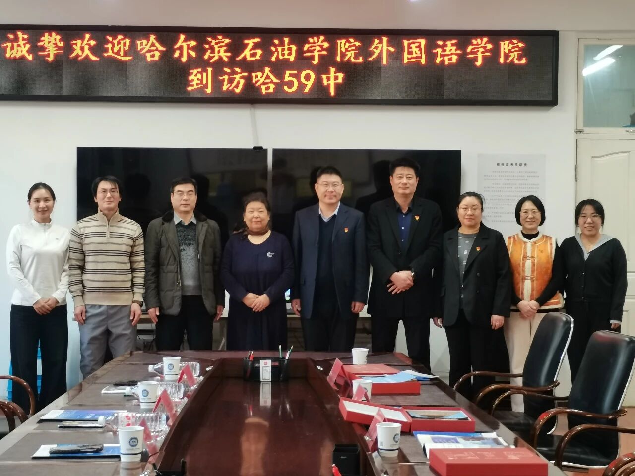 为贯彻落实校地协同育人理念,深化高校与中学在人才培养、教学实践等领域的合作,12月10日,学校招生与校友联络处处长刘洋、外国语学院院长王莉娅、党总支书记毛雷一行前往哈尔滨市第五十九中学,与该校书记、校长徐红宇,副书记王凤奇,生涯规划主任张雪松,团委书记刘白雪,教学主任宫奕丹、牛海轩等领导班子成员及骨干教师代表齐聚一堂,围绕外语教学创新、学生活动共建、实习基地建设等核心议题开展深度交流。