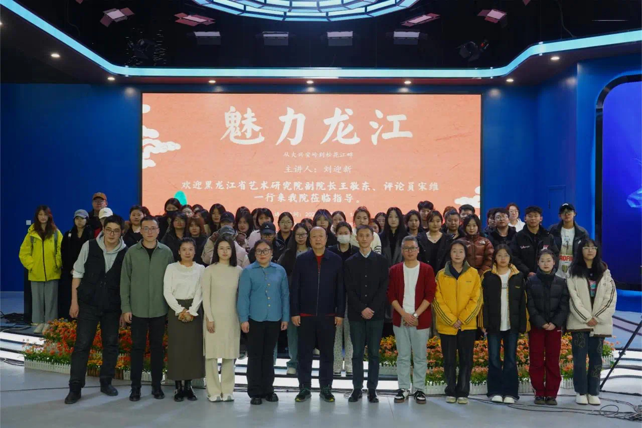 2025年3月11日下午,艺术与教育学院在艺术楼5G演播厅举办了以"魅力黑龙江——从大兴安岭到松花江畔"为主题的专题讲座。一级编剧、黑龙江省艺术研究院高级研究员刘迎新女士,凭借其深厚的艺术理论造诣与创作实践,带领数百名师生开启了一场穿越时空的黑土地文化之旅,同时也深度探讨了黑龙江非遗文化的保护与传承。