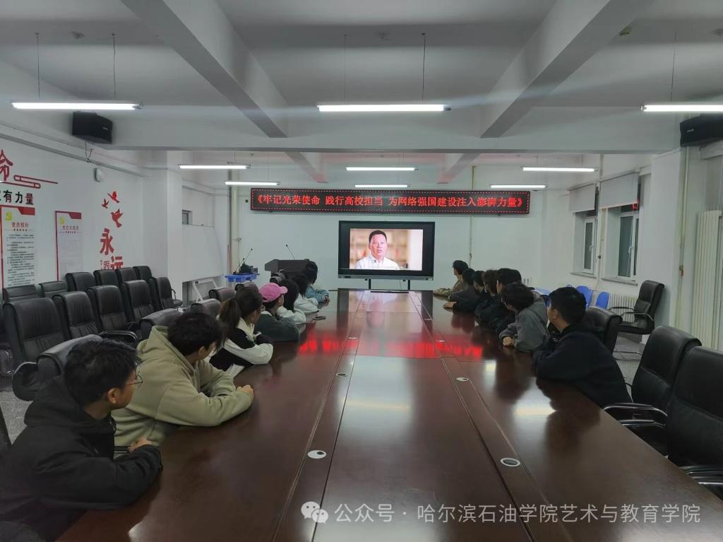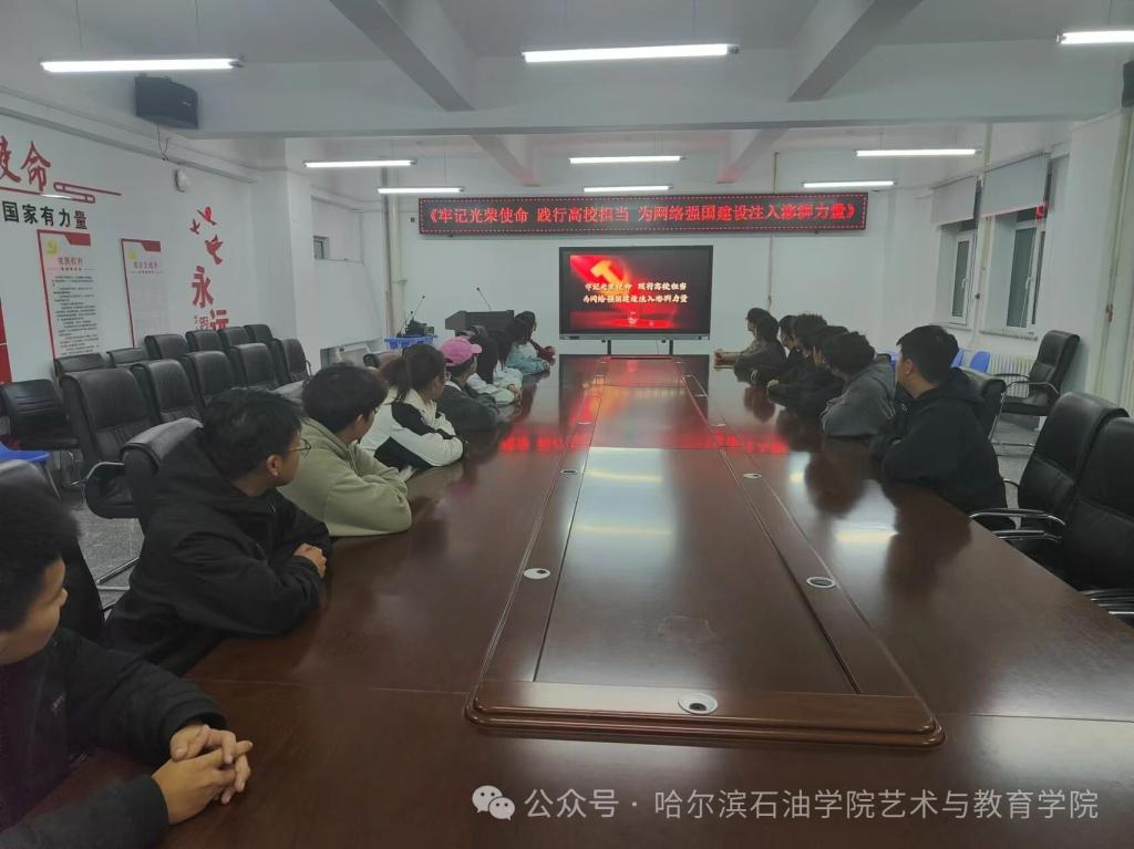 为深入学习习近平总书记关于网络强国的重要思想,牢记高校使命担当,奋力回答好“强国建设 高校何为”的时代课题,为建设教育强国、网络强国注入高校力量。2024年10月11日,艺术与教育学院党总支组织全体党员观看高校党组织示范微党课(第二阶段)第7讲《牢记光荣使命 践行高校担当 为网络强国建设注入澎湃力量》。