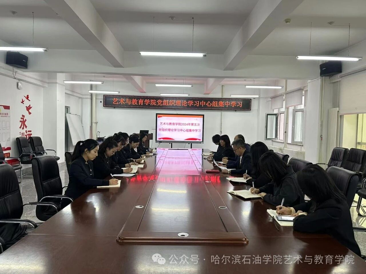 为进一步深化党史学习教育,增强党员教师的党性修养,2024年8月27日,学院召开第五次党组织理论学习中心组专题学习会议,深入学习《党史学习教育工作条例》,会议由党总支书记徐宏莉主持,理论学习中心组成员参加。