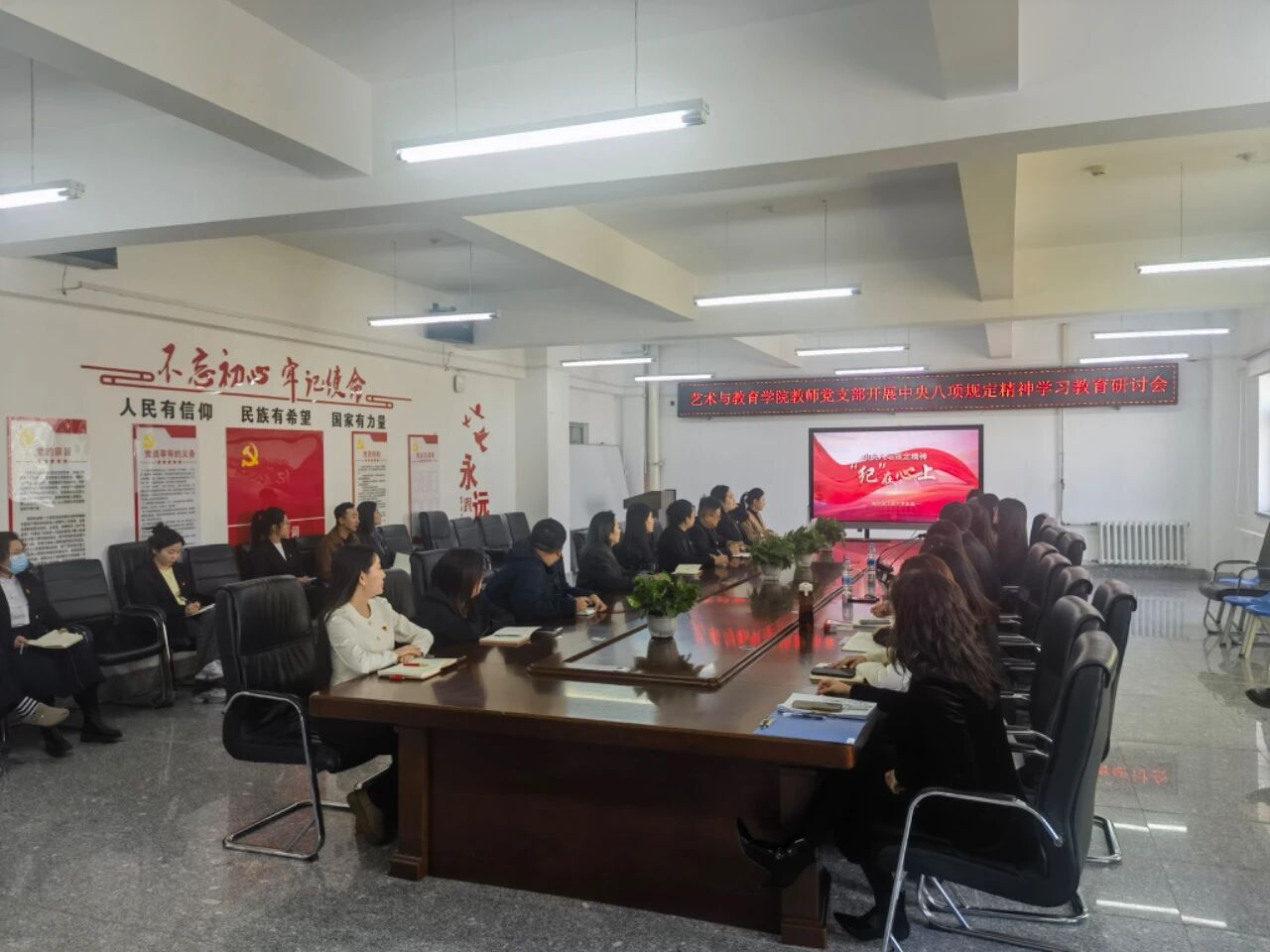 党支部书记孟令贤传达学校关于在全校开展深入贯彻中央八项规定精神学习教育的实施方案,带领支部党员重点围绕实践意义、时代意义、制度意义以及改进调查研究等方面进行了学习。 全体党员观看了《中央八项规定精神“纪”在心上》视频。全体教职工要时刻保持头脑清醒,在典型案例中受教育、有警醒、见行动,把现实中的教训转化为刻在心底的警钟,把纪律内化于心、外化于行,一体推进党风政风、师德师风、教风学风建设,营造风清气正的政治生态和良好的育人环境。