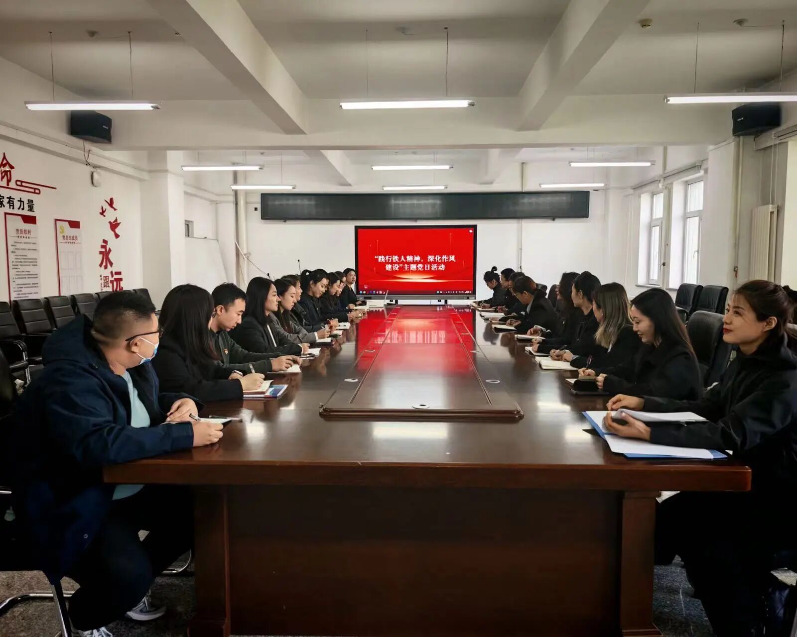 10月15日,艺术与教育学院教师党支部组织全体党员开展“践行铁人精神,深化作风建设”主题党日活动,集中观看经典影片《铁人》。此次活动旨在通过重温王进喜同志“宁可少活二十年,拼命也要拿下大油田”的奋斗事迹,引导教师党员深刻领会“艰苦奋斗、无私奉献”的铁人精神内核,将其转化为落实中央八项规定精神、提升作风建设的思想动力。同时要将观影学习与“我为师生办实事”实践相结合,以铁人精神为镜,检视自身在教育教学、服务师生中的不足,推动党建与业务深度融合。