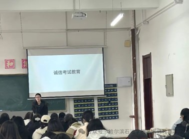 各年级辅导员、班主任针对英语四、六级和期末考试,强调违纪作弊的后果,引导学生自觉抵制违纪作弊行为,通过一系列真实案例,强调了诚信考试的重要性,引导同学们严格遵守考试规章制度,以端正的态度建设良好学风、考风,并签订诚信考试承诺书。参加考试时党员、学生干部挂牌考试。通过主题班会,同学们认识到诚信考试与调整考试心态的重要性,意识到正确的复习方法对考试的作用。辅导员对同学们提出以下几点要求:充分利用考前时间,认真复习;提高自身修养,以诚信的态度对待每一场考试,杜绝作弊行为;端正考试态度,在考试过程中尊重监考教师,做到文明考风,诚信考试,自觉遵守考场纪律。