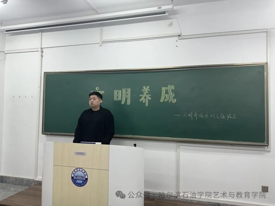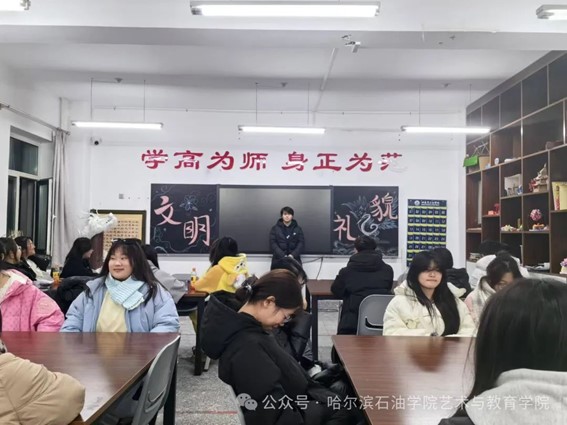 为引导我院新生自觉养成文明习惯,摒弃陋习,帮助我院新生规范行为习惯,强化遵章守纪意识。2024年12月10日,艺术与教育学院组织开展了文明习惯养成行为规范系列主题教育活动,2024级全体学生参加,活动由2024级辅导员郐滨、朱雁飞主持。
