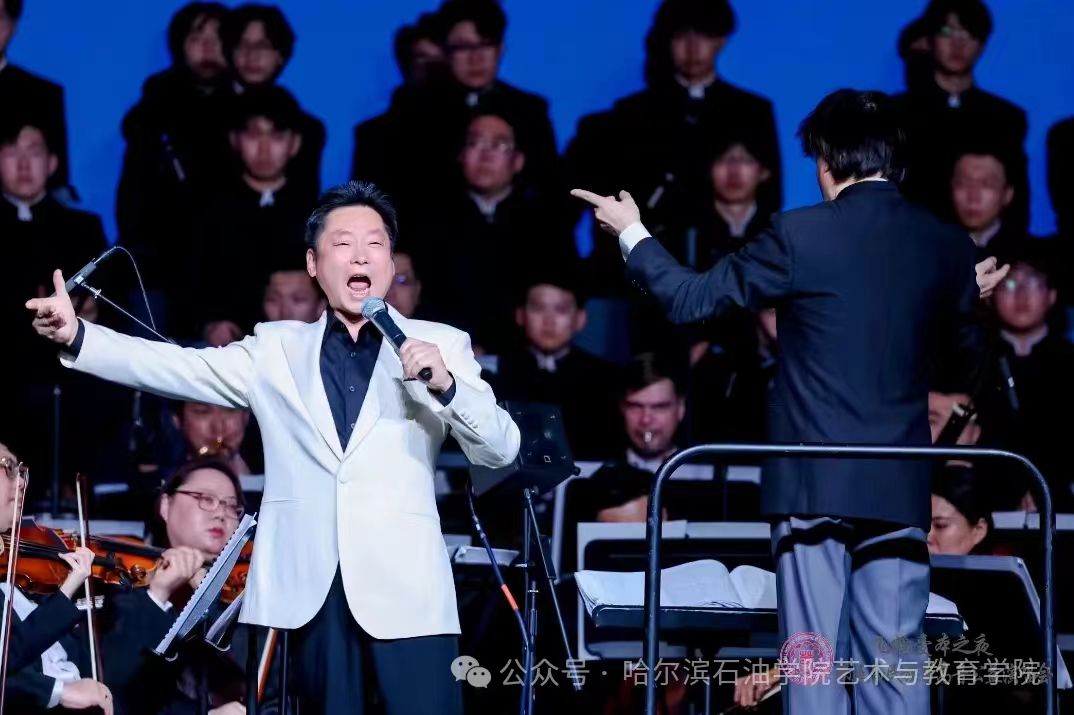 欧博官网青年教师王尚文在音乐会中亲情演唱了《浪花里飞出欢乐的歌》、《松花江上》、《鄂伦春小调》、《北大荒人的歌》等几首脍炙人口的歌曲,充分展现了欧博官网青年教师高水平的歌唱能力。在王尚文老师的带领下,欧博官网16名学子成功地将欧博abg游戏登录入口艺术与教育学院的风采带向全国的观众朋友。