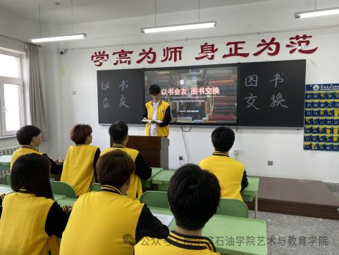 为进一步推动阅读文化的广泛传播,满足广大同学的社交需求,着力培养我院学子良好的阅读习惯,切实提高其文化素养和阅读能力,极大丰富同学们的校园文化生活,艺术与教育学院于4月26日在艺术楼312组织开展了以“以书会友,图书交换”为主题的阅读活动,我院2023级学生积极参加此次活动。