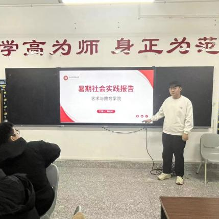 为贯彻落实习近平总书记关于青年工作的重要思想,提高我院学生关注基层、服务社会、服务群众的意识,引导广大学子在社会这个大课堂中受教育、长才干、作贡献,艺术与教育学院于2023年12月18日,在艺术楼307组织召开了以“学习二十大 永远跟党走 奋进新征程”为主题的2023年社会实践报告会,共有11名同学参加此次会议。